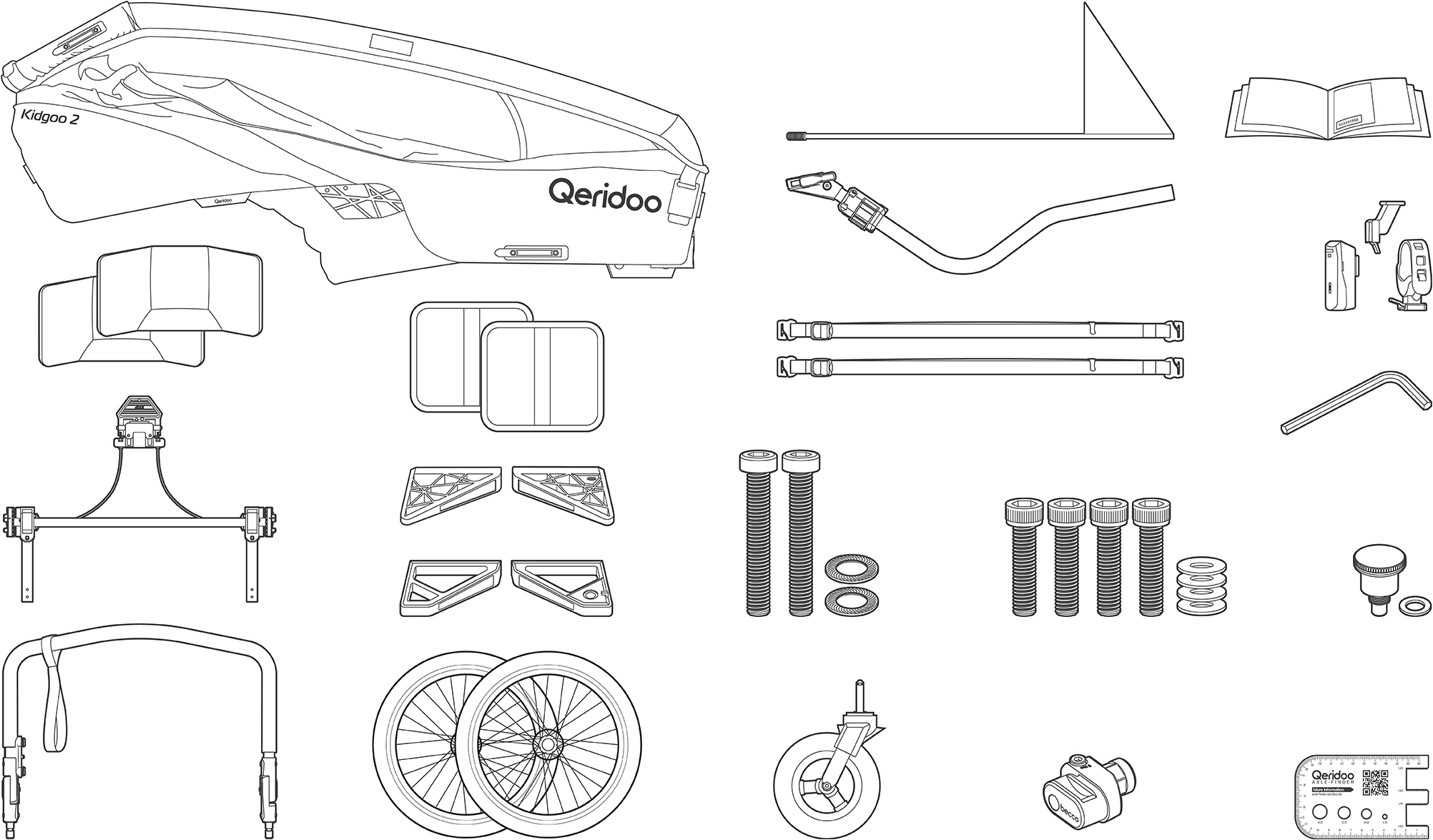 - Innensechskantschlüssel, Garantiekarte, Achs-Finder und Benutzerhandbuch