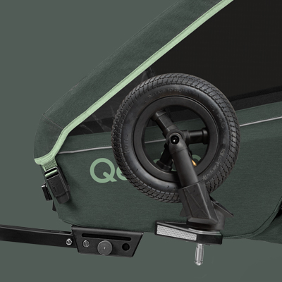 Das luftgefüllte Buggyrad ist um 360° drehbar und schnell über die Funktionstasten für den Trailer-Modus zu entnehmen. Zum sicheren Joggen stellst Du es einfach fest.