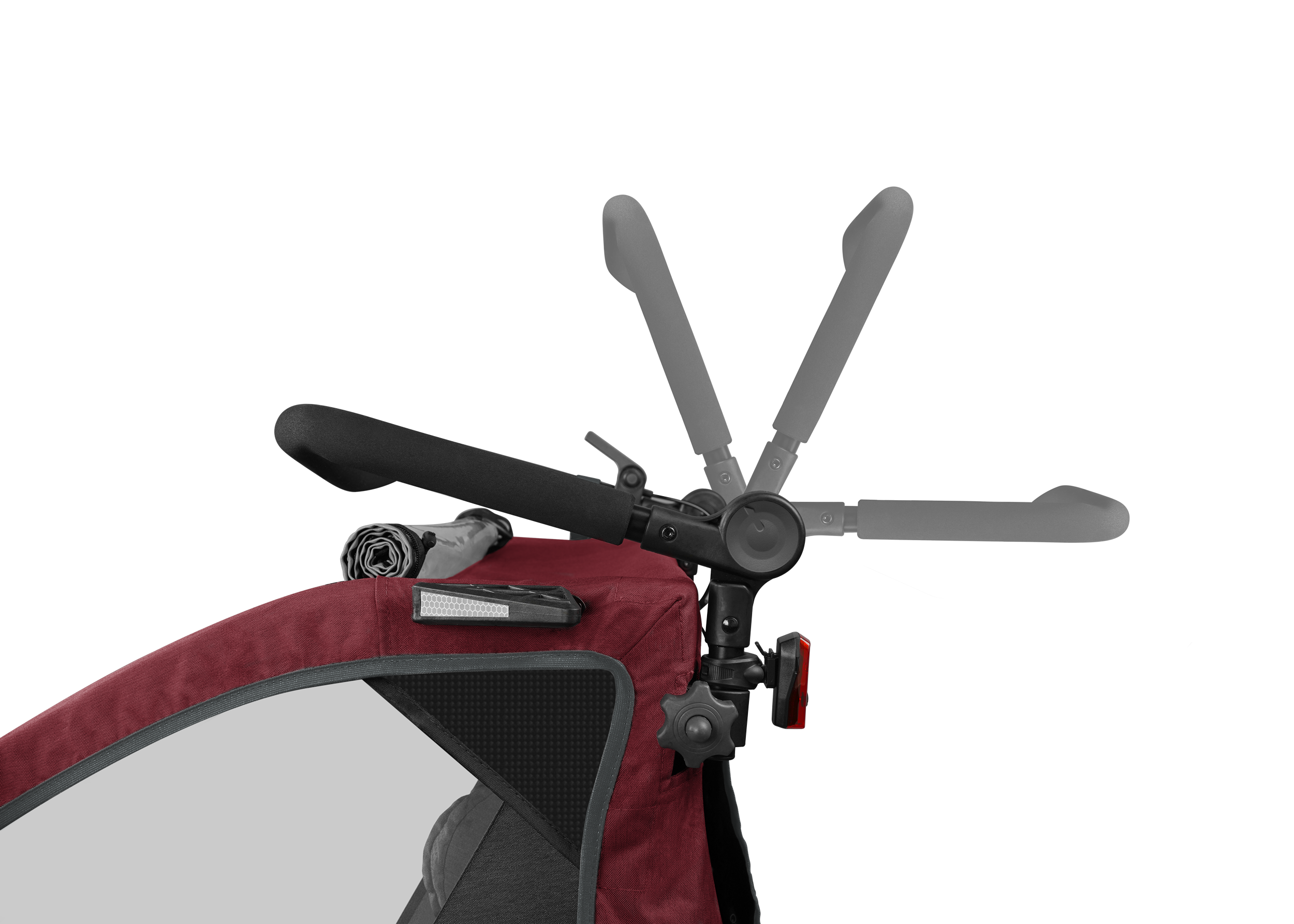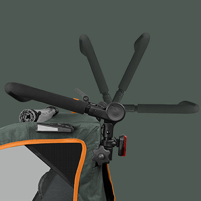 Der Schiebegriff lässt sich ganz einfach an Deine Größe anpassen und dient Dir im Trailer-Modus als Überrollbügel.