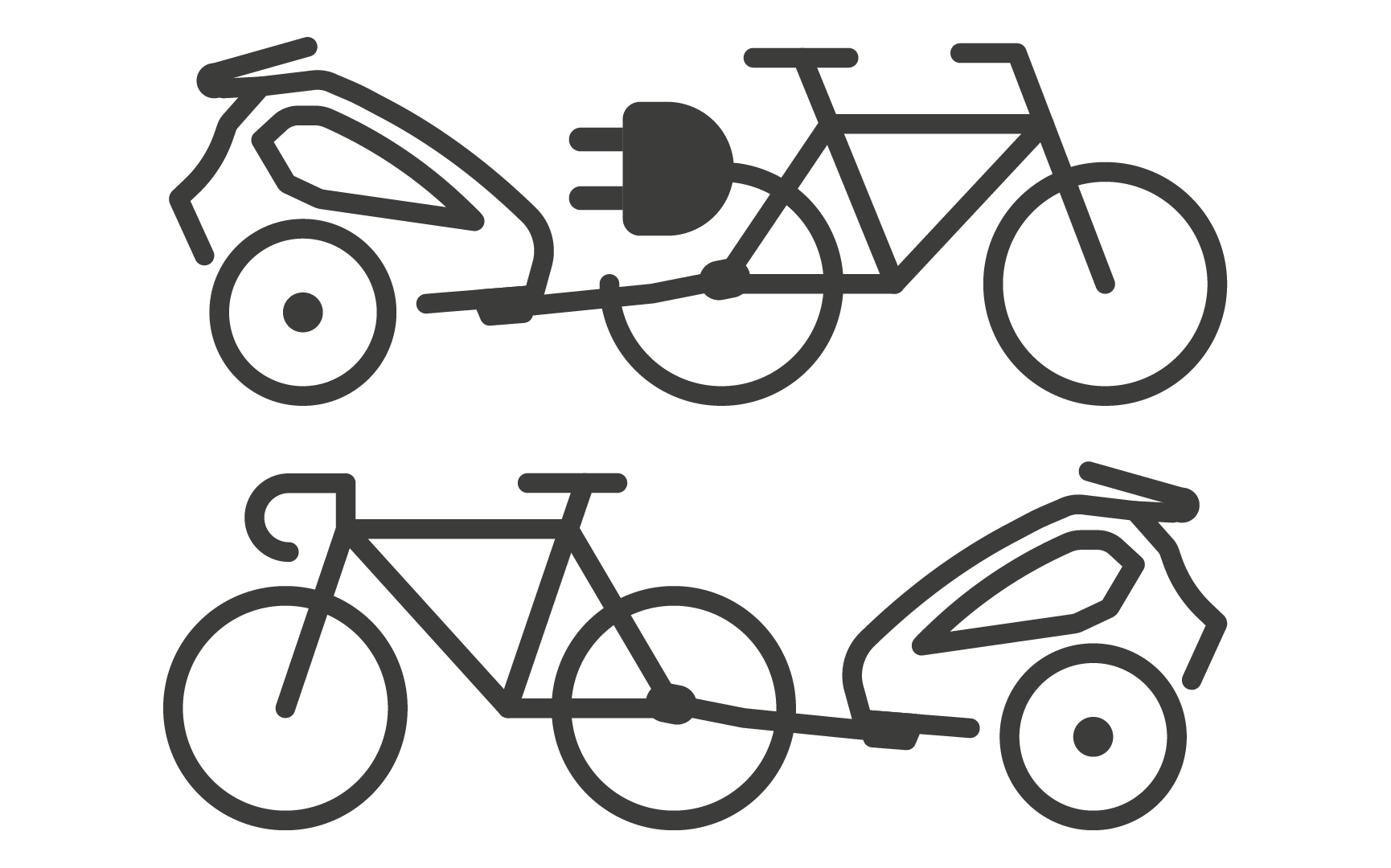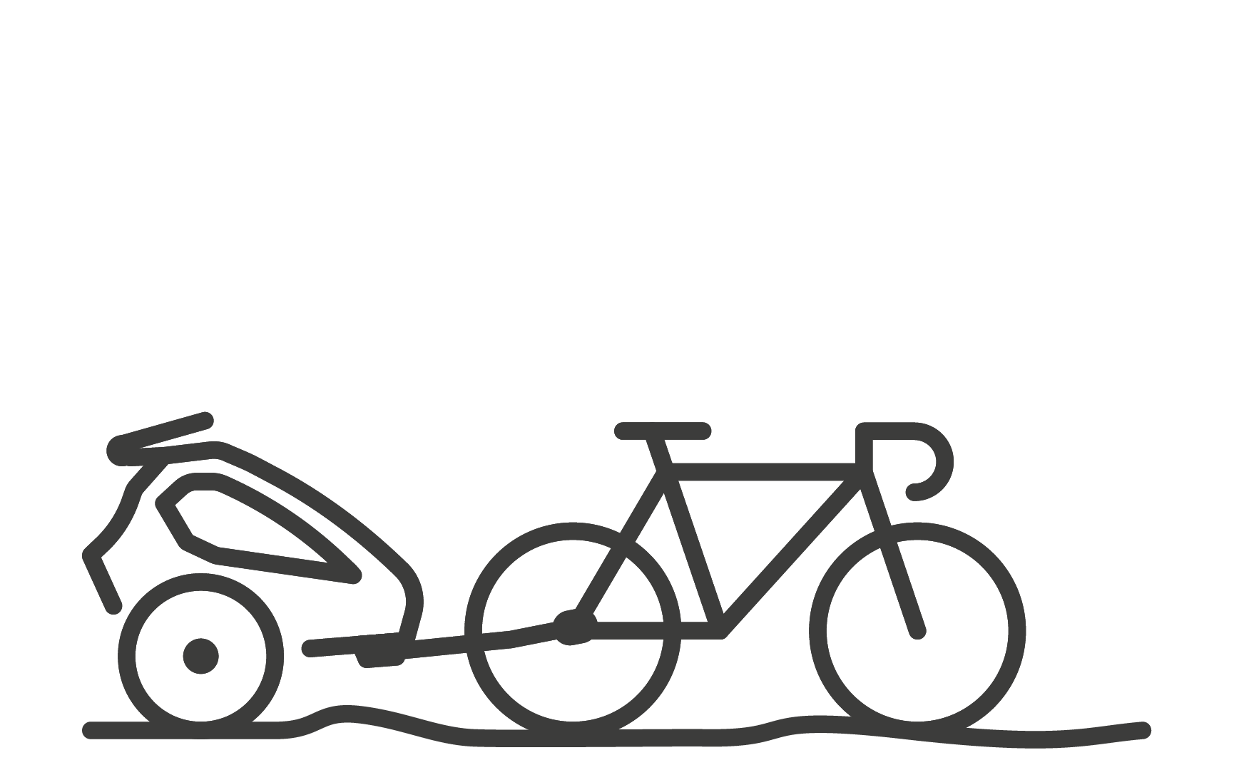 Die Kupplung wird an der Hinterradachse Deines Fahrrads angebracht. Über eine Vierfach-Sicherung verbindest Du mit der Deichsel Fahrrad und Kindersportwagen.